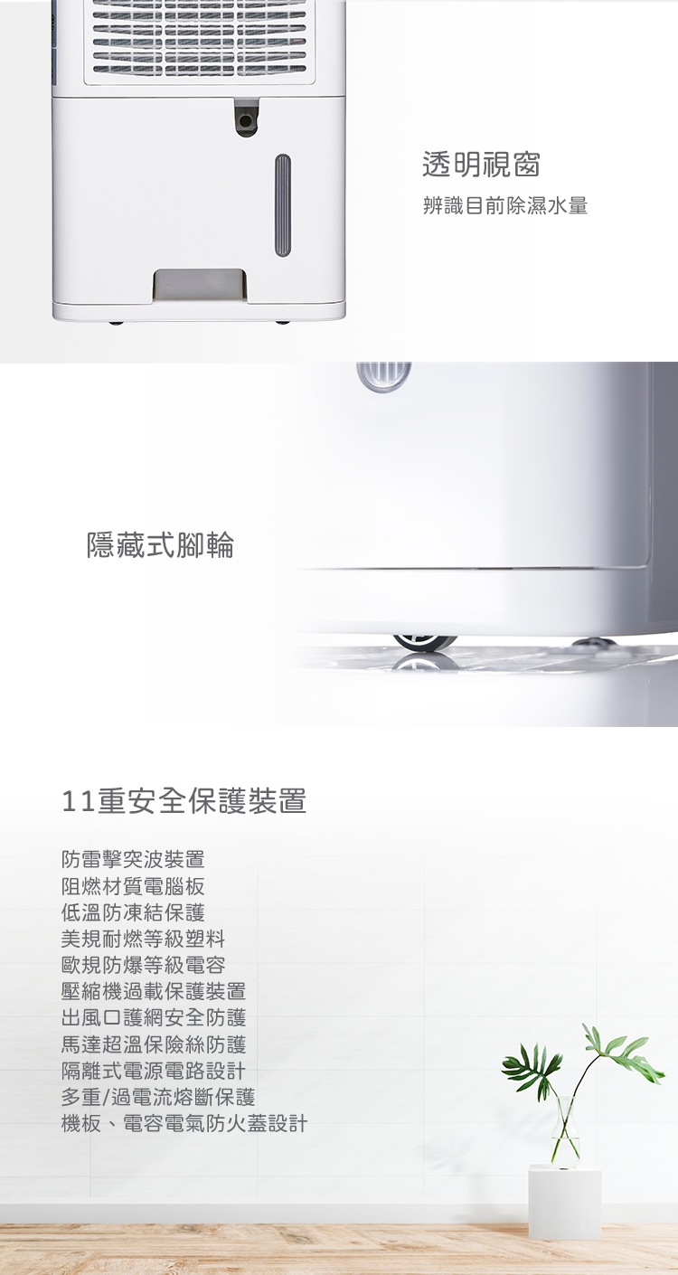 額定除濕能力: 5.5 公升/ 日 (室溫27 ℃;濕度 60 %)