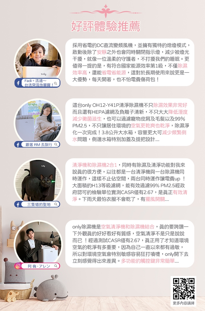 ※ 本款除濕機清淨能力,依標準規範實測CASR值為2.67,因以除濕為主,附加清淨為輔,並無單獨清淨,所以無另行申請清淨機能效分級標示。