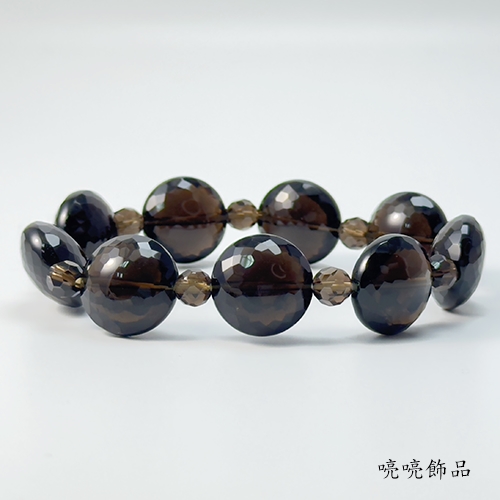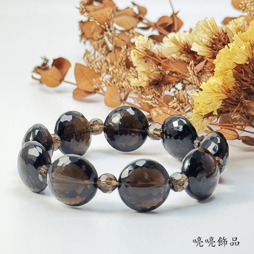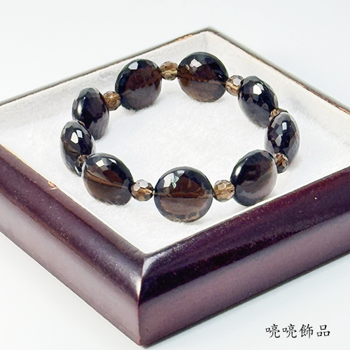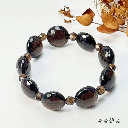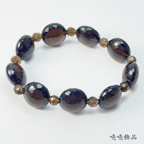 茶水晶10*16mm扁圓型切面角度珠設計款手鍊