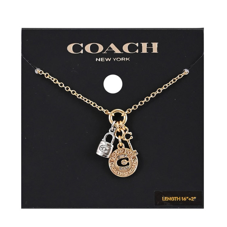 COACH 專櫃項鍊推限量新款,別緻的鎖釦造型圓牌LOGO,是專櫃熱銷經典配件款,設計優雅而經典,既精緻又充滿都會風味,適合日常配襯,無論送禮或自用皆適宜。
