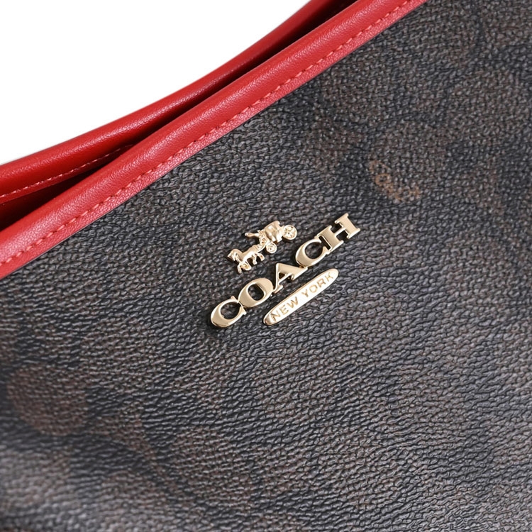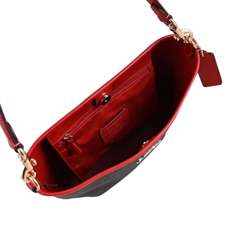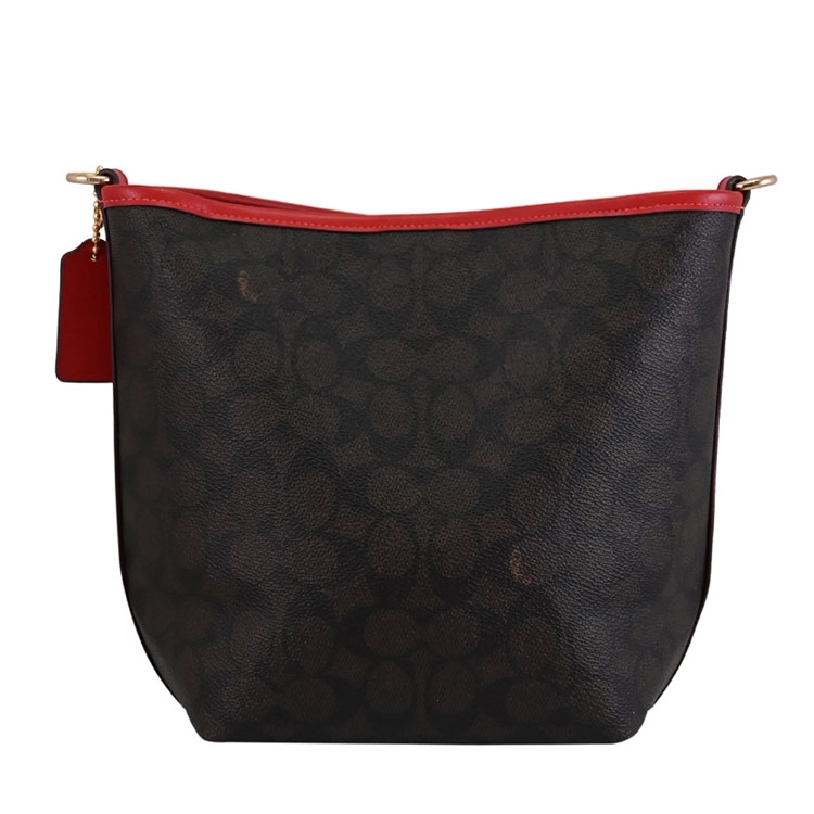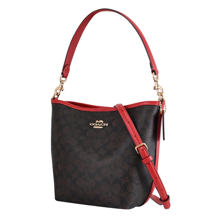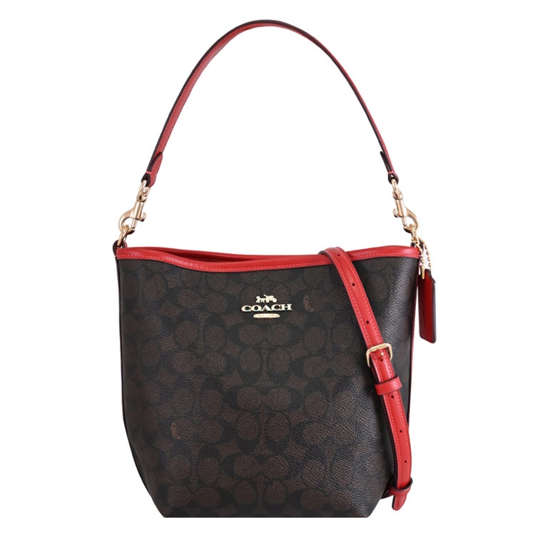 COACH專櫃經典推新款,專櫃熱賣兩用水桶包,經典改版款,滿版印花皮革搭配金屬馬車LOGO,磁扣開口/內1拉鍊袋供收納,內可放長夾、手機或小折疊傘等隨身物品,背帶皆為可拆式,可斜背側背或手提肩背使用,官網熱銷款,是款輕鬆出門的包款,無論外出逛街或出遊皆實用。