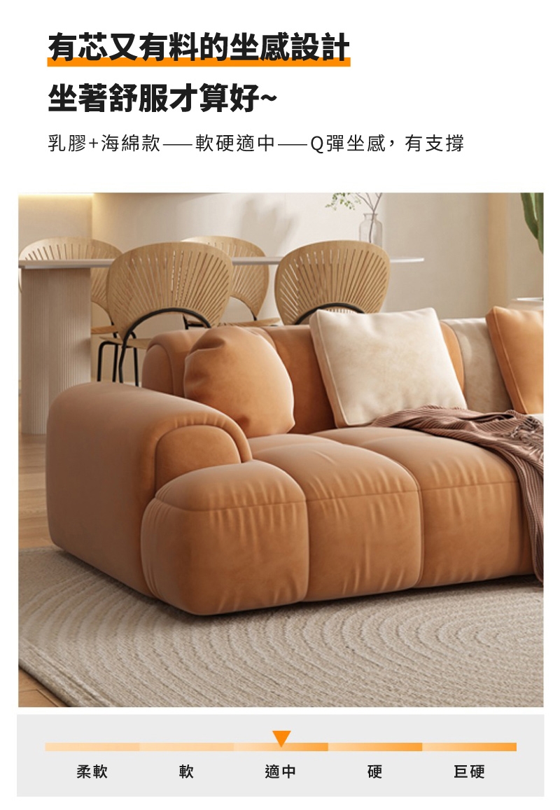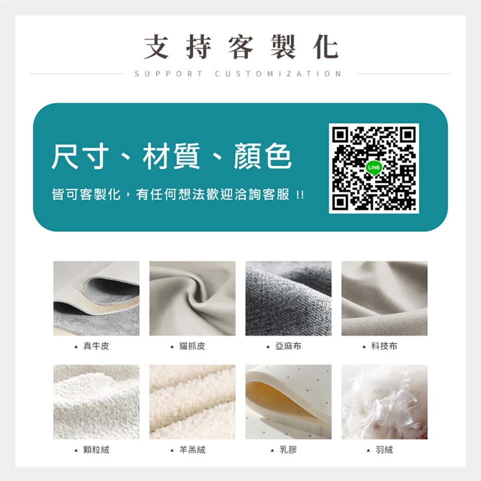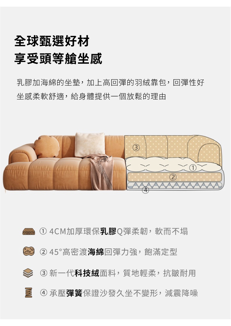 材質:科技絨布+海綿+乳膠+木骨架