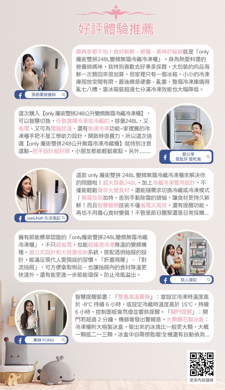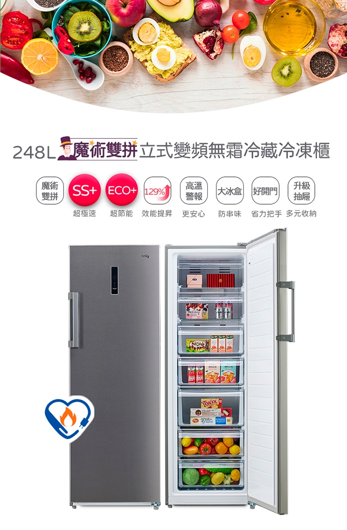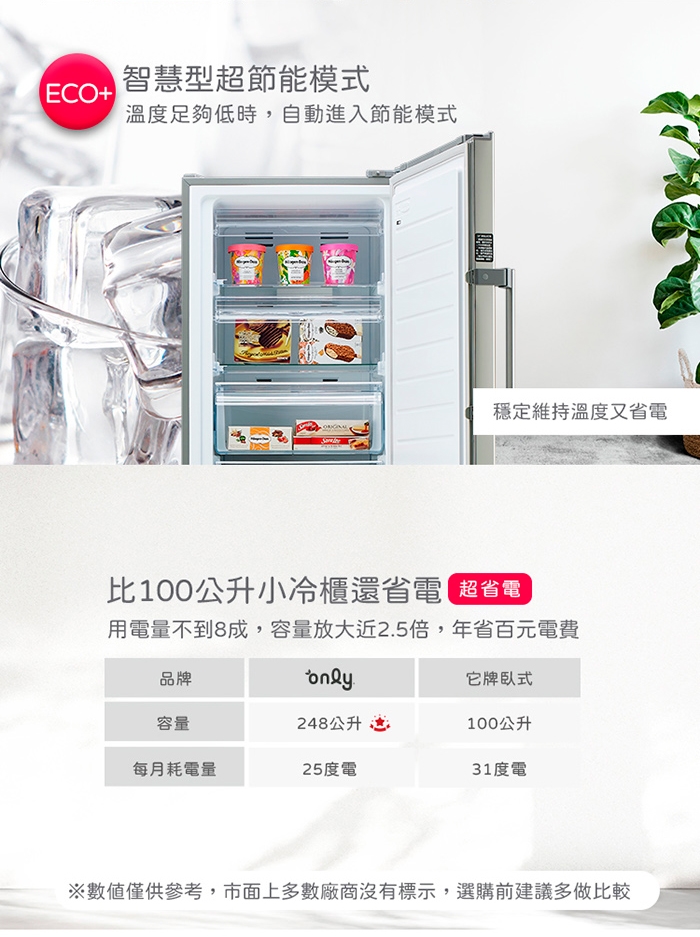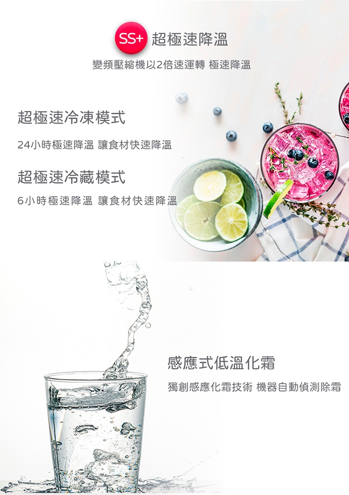 2. 冷藏/冷凍產品時,務必將食材密封完正,減少開關門,減少箱體內濕度,以達到最佳除霜效果以及水盤蒸發效果。