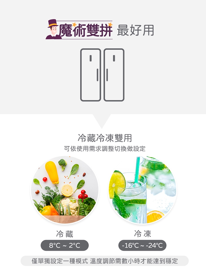 1. 產品僅能降溫,無法升溫,如需冷凍模式轉回冷藏模式,建議將產品門打開通風,靜置到0度以上.並將箱體內擦拭乾淨,再使用。