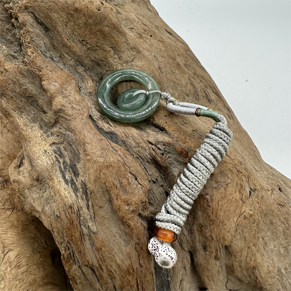 【肌容雪】緬甸翡翠天然A貨綠飄花同心環吊墜 編號948