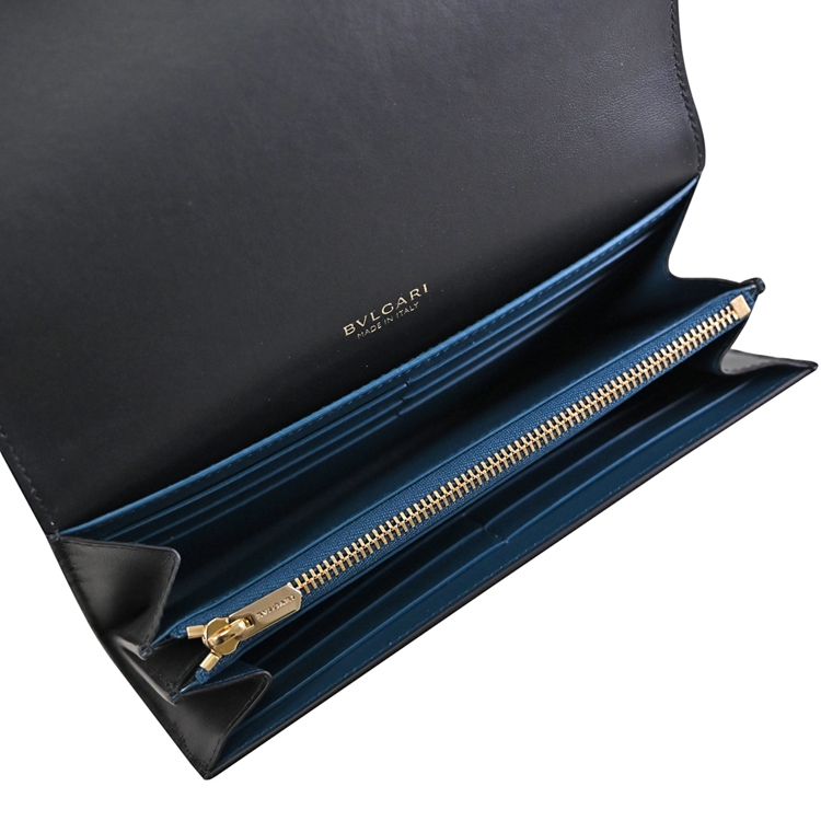 寶格麗 BVLGARI 於1884年於羅馬創立,多年後從一家單獨的珠寶店搖身一變成為一家國家品牌,以絢爛大膽色彩組合設計,獨特的風格而著稱,得到世界各國社會名流的熱烈追捧,備受皇室貴族、影視明星的青睞;專櫃經典長夾新款,採用壓印LOGO與內裏撞色設計,翻蓋開口,內有16信用卡夾層+2風琴夾層+1拉鍊袋+1內貼袋,時尚配件,簡約時尚的拉鍊長夾。