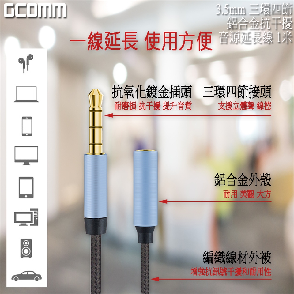 ● 適用於3.5mm音源輸出與輸入 耳機線與麥克風線延長