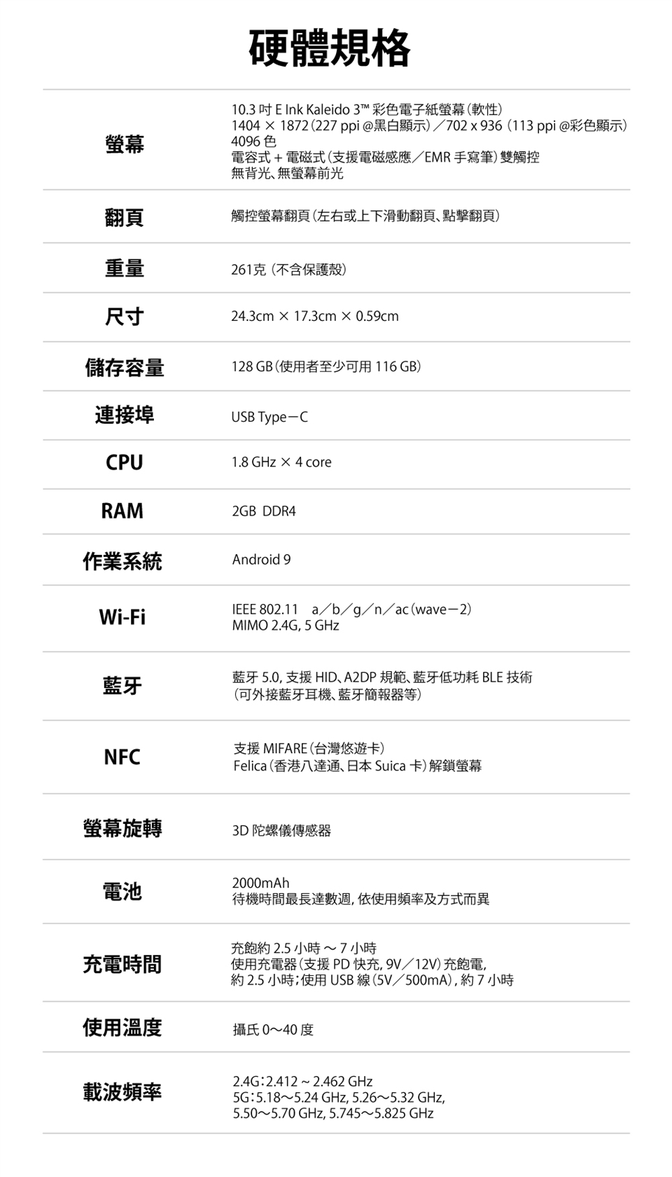 以上規格若有任何錯誤,請以原廠所公布資料為主