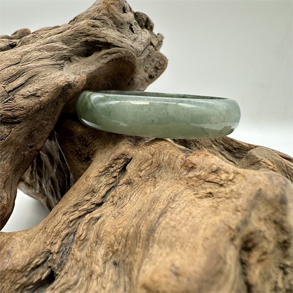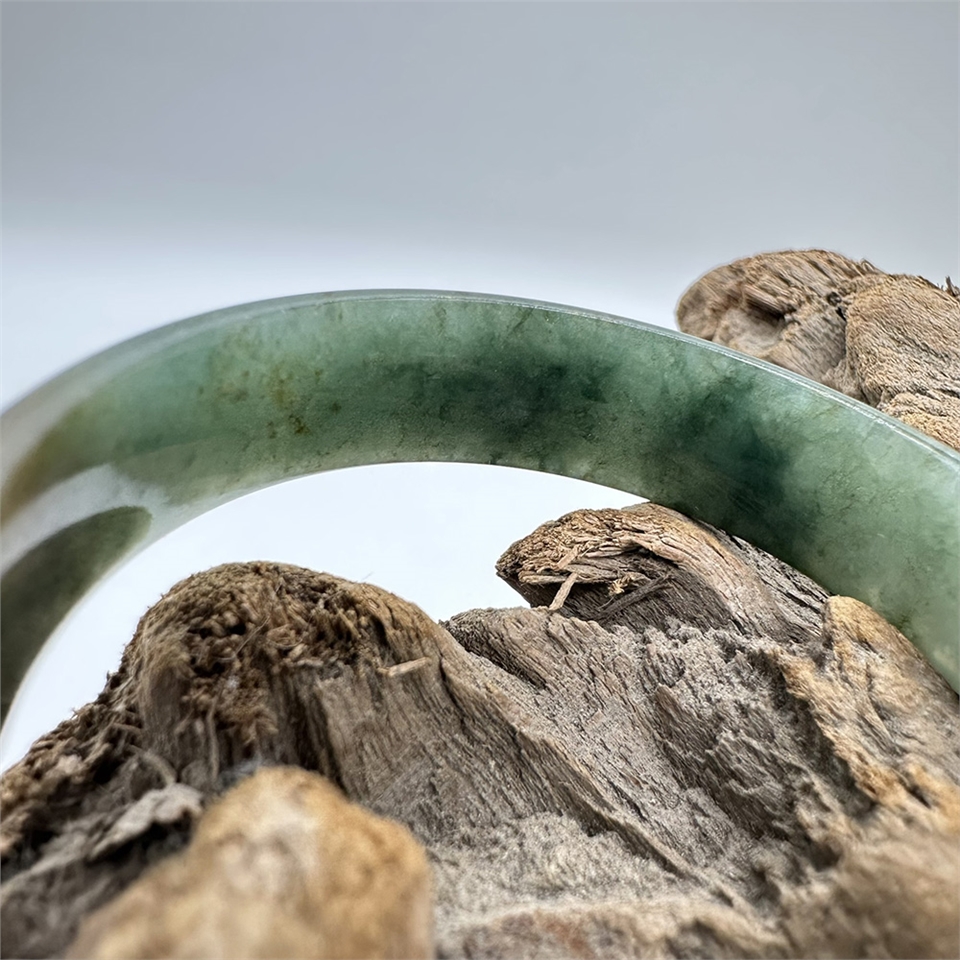 【肌容雪】緬甸天然A貨翡翠皇家綠飄花翠手鐲 編號977(鐲寬51.2mm #16.5號)