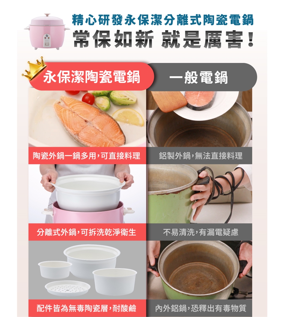 品名:【鍋寶】永保潔分離式陶瓷不沾電鍋 10人份-奶茶