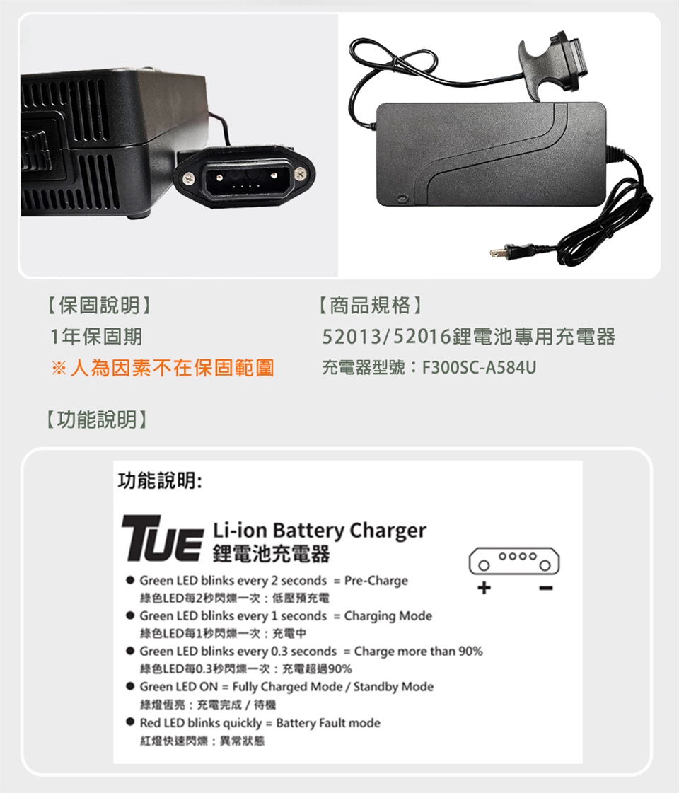 商品名稱:5A鋰電池充電器(52013/52016有量鋰電池專用)