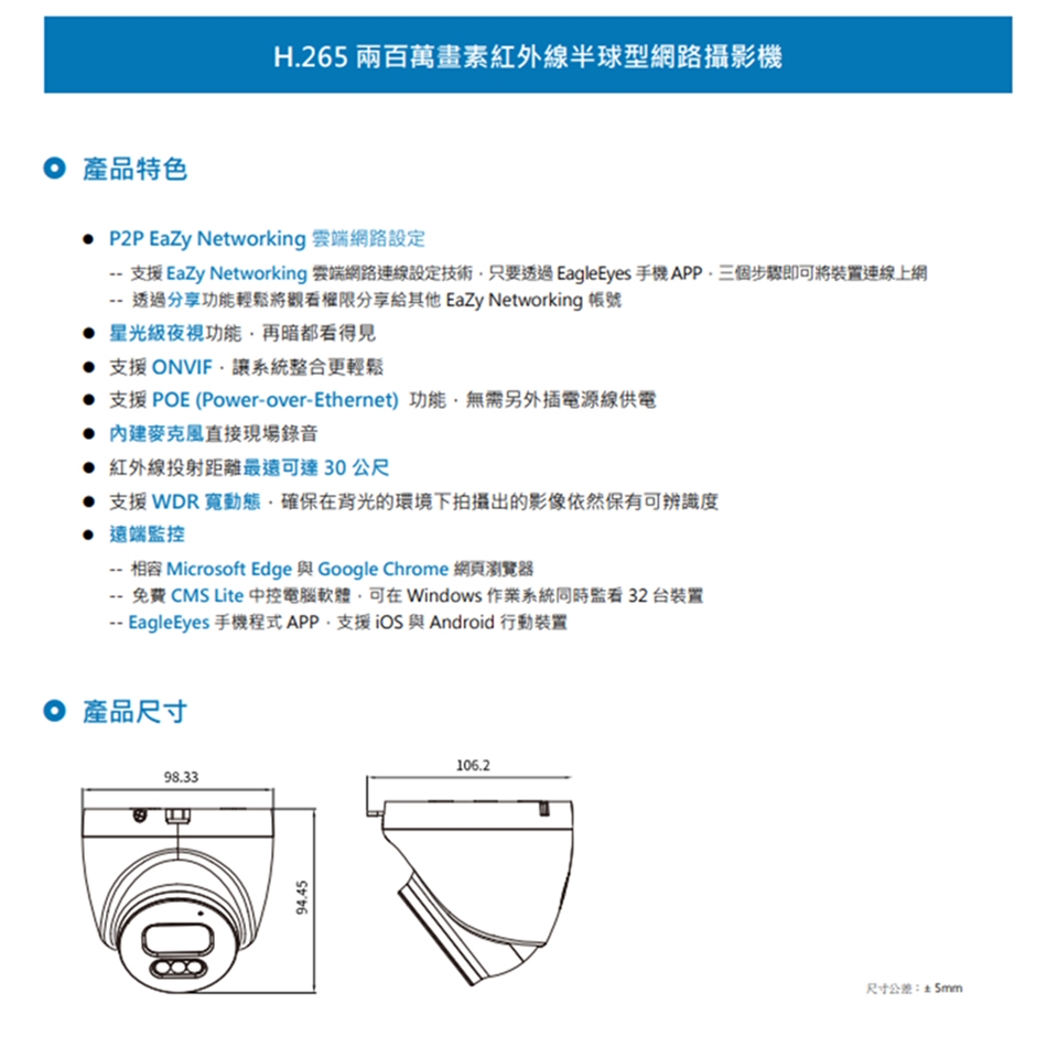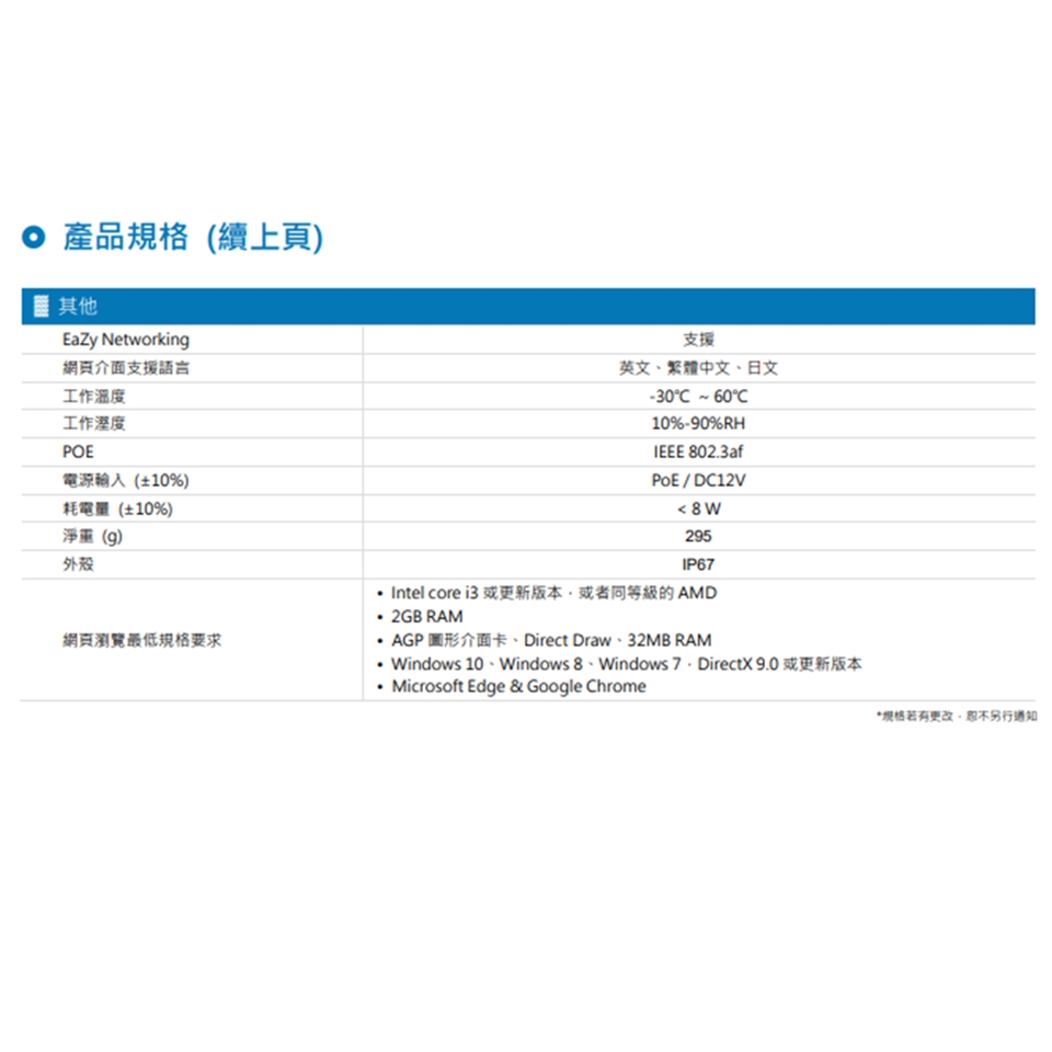 -支援POE (Power-over-Ethernet)功能,無需另外插電源線供電