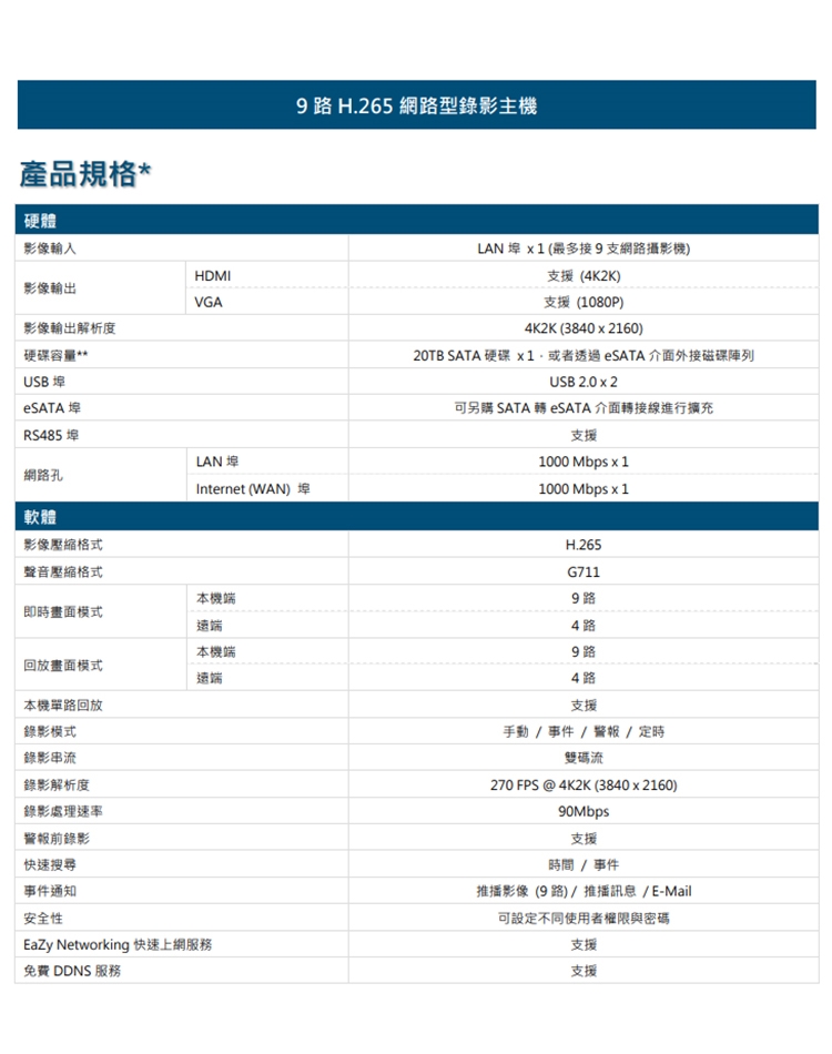 DGH1107BX-U1 9路 H.265 NVR 網路型錄影主機