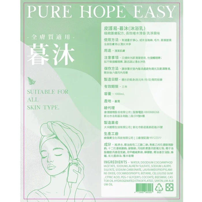 ◆ 使用方法:取適量於掌心,或沐浴海綿、毛巾,直接搓揉全身肌膚再以清水沖淨