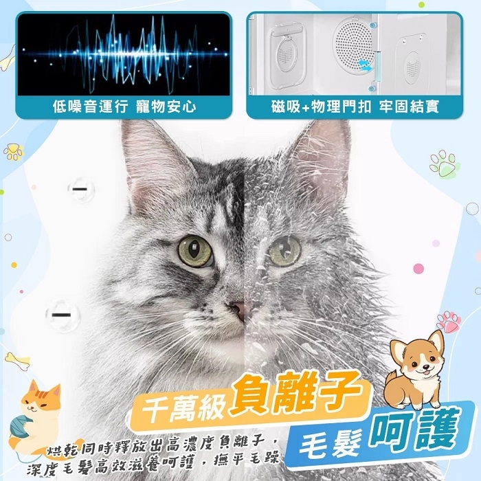 3.若寵物毛量多或長毛,可在烘毛前先用毛巾吸乾大部分水分