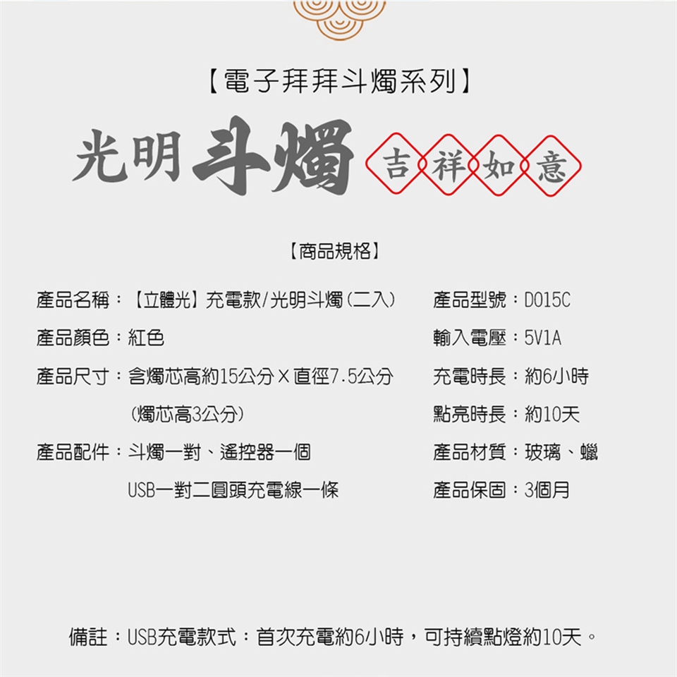 產品名稱:立體光充電款/光明斗燭(二入)