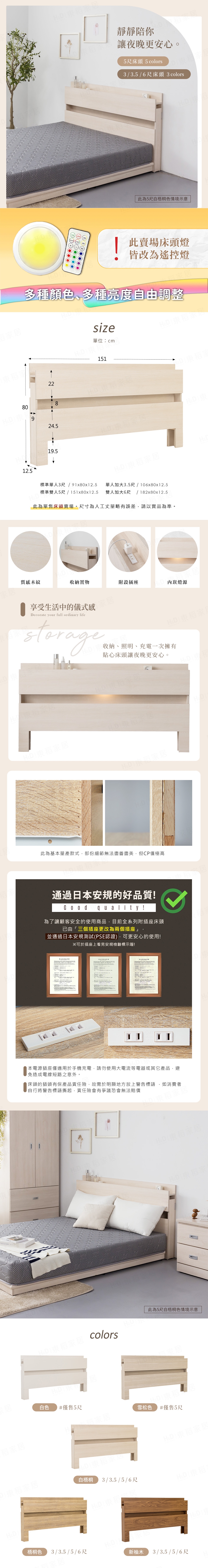 床頭箱附一入遙控燈(共12色) -可調整燈的大小