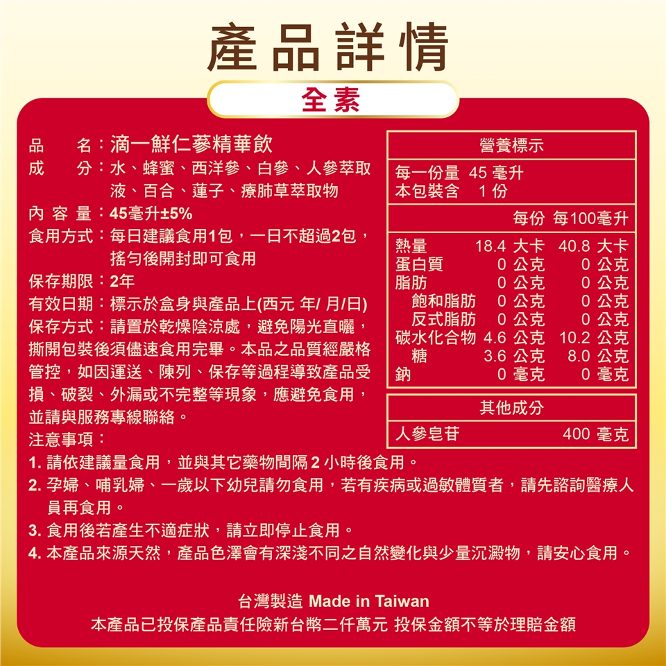 2. 孕婦、哺乳婦、一歲幼兒請勿食用,若有疾病或過敏體質者,請先諮詢醫療人員在食用。