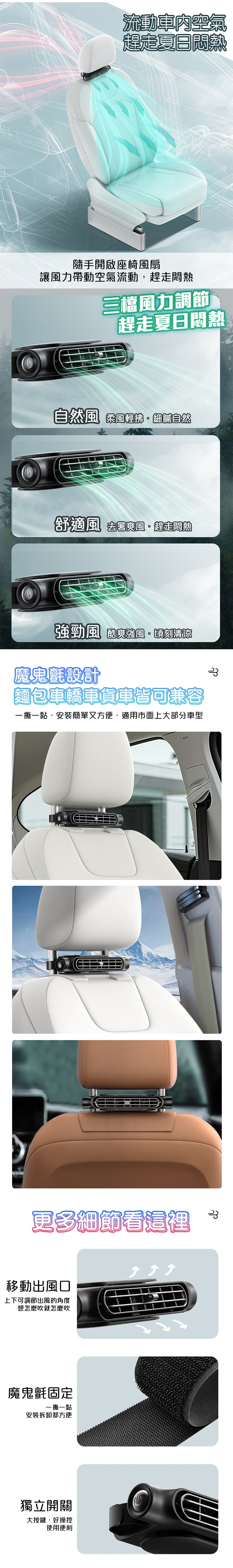 商品名稱:好涼爽不占位多檔調節車用座椅風扇-C/小風扇 電扇 隨身風扇 車用風扇 夾扇 推車風扇 降溫風扇