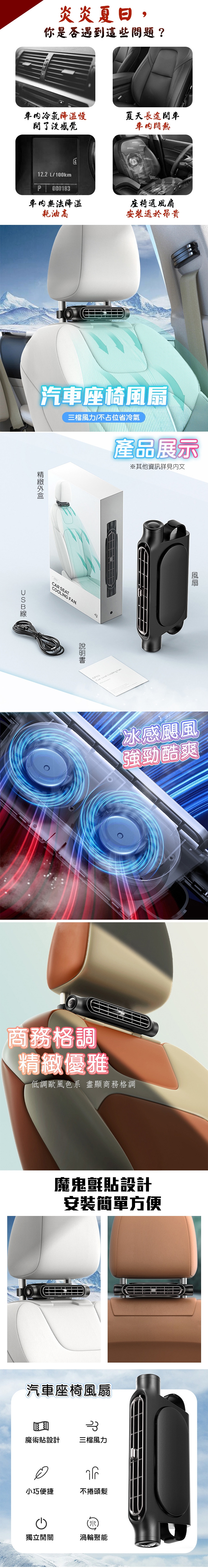 包裝內容物:座椅風扇X1、說明書X1、電源線X1
