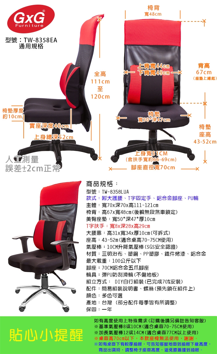 5.商品尺寸為人工測量,若有誤差正負2CM為正常狀況,或因商品規格、配件,有所異動皆會造成商品尺寸大小略有不同,本公司保證配件變更,絕不影響品質與成本價格。