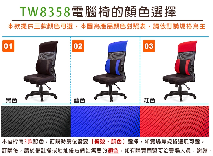 高背電腦椅 TW-8358LUA (紅色示意照)