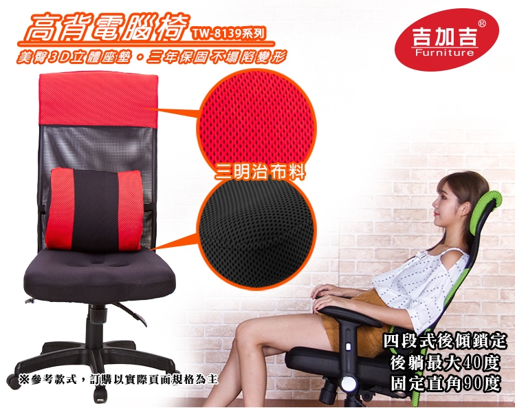 高背電腦椅 TW-8358LUA9 (紅色示意照)