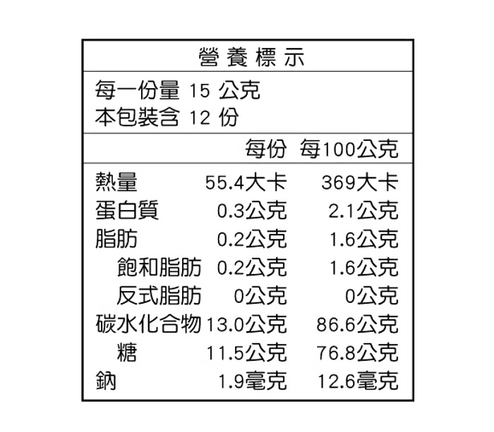 內容量 ( g/ml ) 180g(15g*12包)