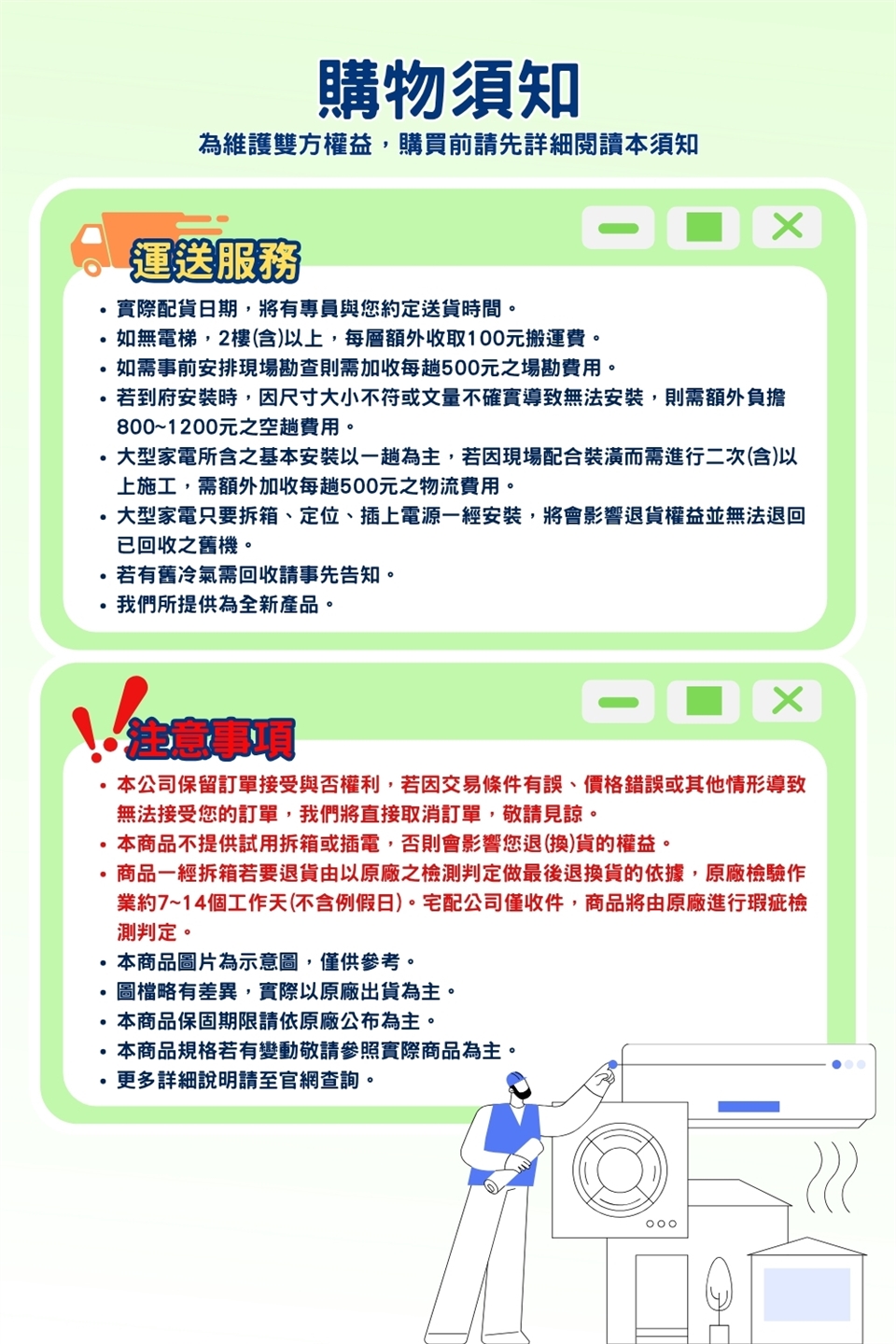 含基本安裝(額外施工項目另行付費)