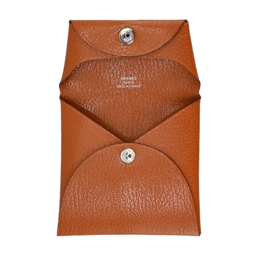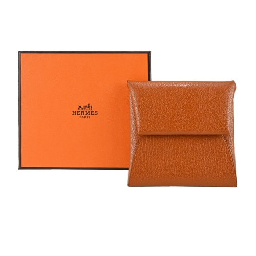 Hermes 愛馬仕 Bastia 羊皮迷你雙折扣式名片夾零錢夾(薑餅色)