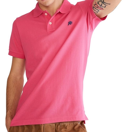 【Aeropostale】2025男時尚字母標誌桃紅色短袖POLO