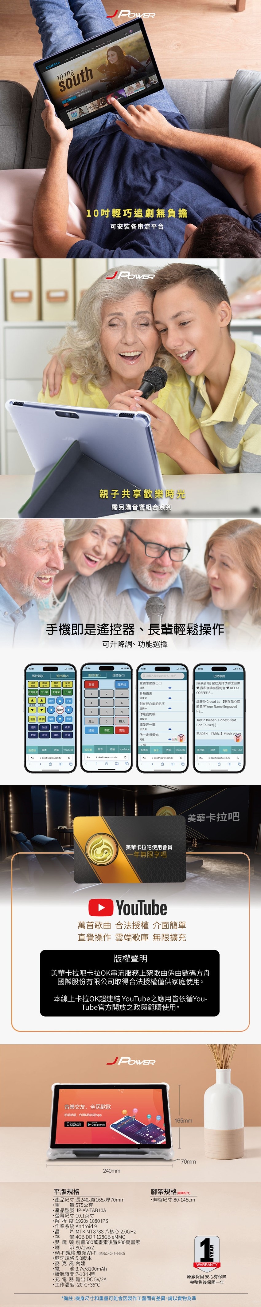 JPOWER 杰強 10.1 吋 SingPAD 美華點歌平板+(美華一年序號 點歌平板) (編號:JP-AV-TAB10A)