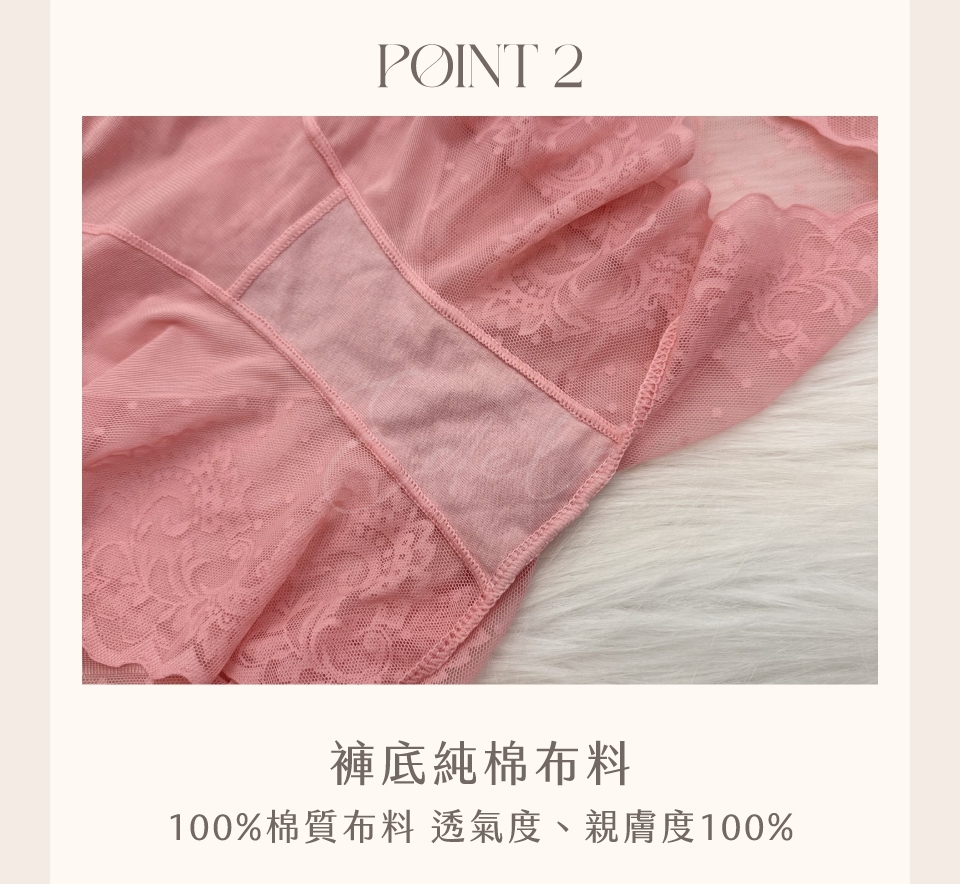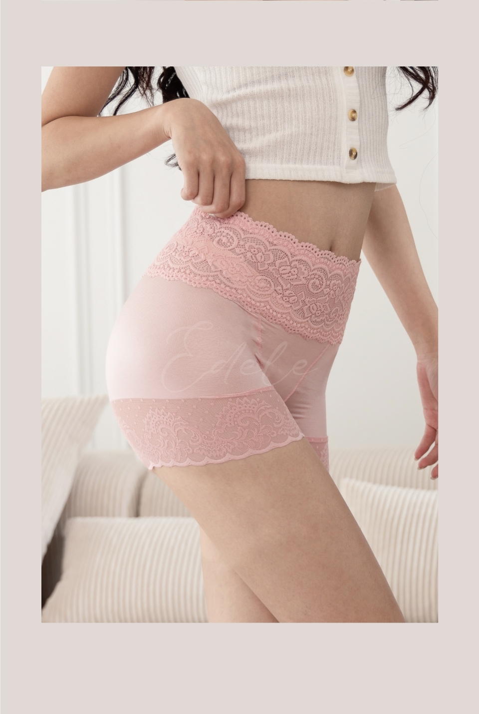 加強束腰/平腹設計,蕾絲圖藤延長褲角緊束無痕防走光。