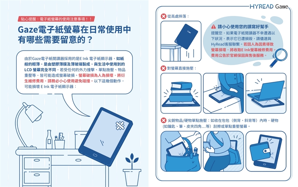 | 活動期間於以上通路購買以下Gaze系列閱讀器主機,可獲贈購書金折價券。 (1) 購買一台HyRead Gaze Mini+ 6吋主機,可獲贈購書金折價券【300元】。 | |