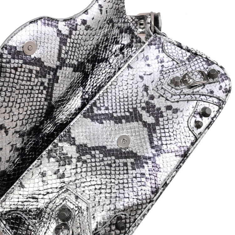 《BALENCIAGA》,深受不少國內外名人青睞的品牌,其魅力在台灣持續燃燒,是許多人踏入名牌世界的第一選擇, 熱銷經典款再創新設計,獨特包型設計更顯高貴及優雅,新版Le Cagole系列包款,採用質感蛇紋壓紋造型+小牛皮材質,翻蓋開口/內1貼袋+2拉鍊袋可提供收納, 可放長夾手機等隨身物品,是近年最夯的包款,顯出低調奢華的質感,都會時尚感,搶眼又好搭風格。