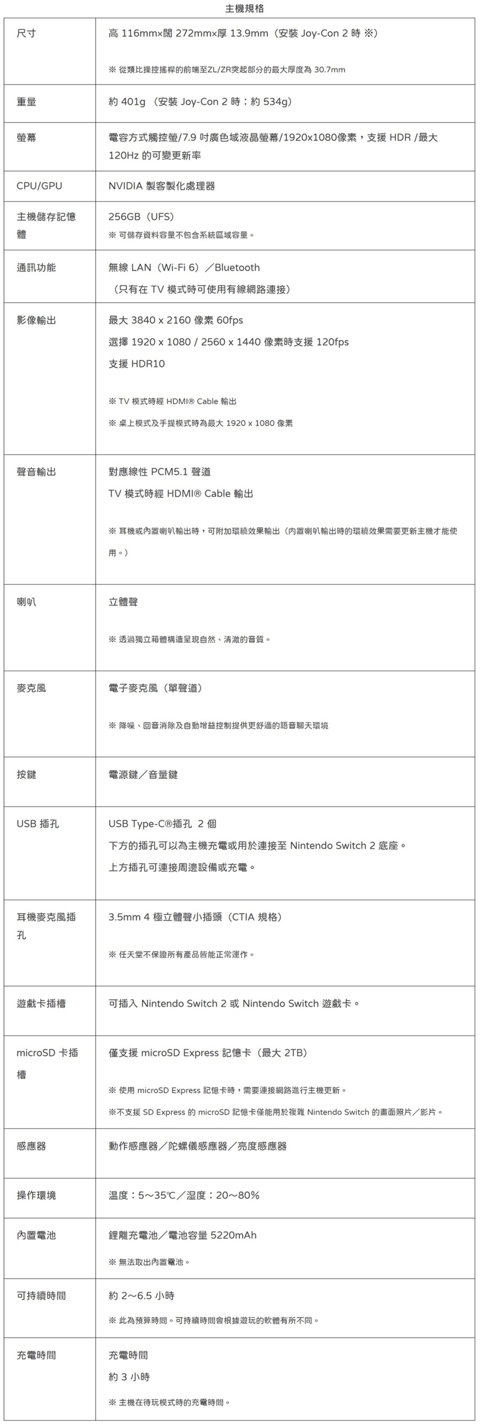 | 組合內容 | 1、Switch 2 主機(台灣公司貨)×1 |