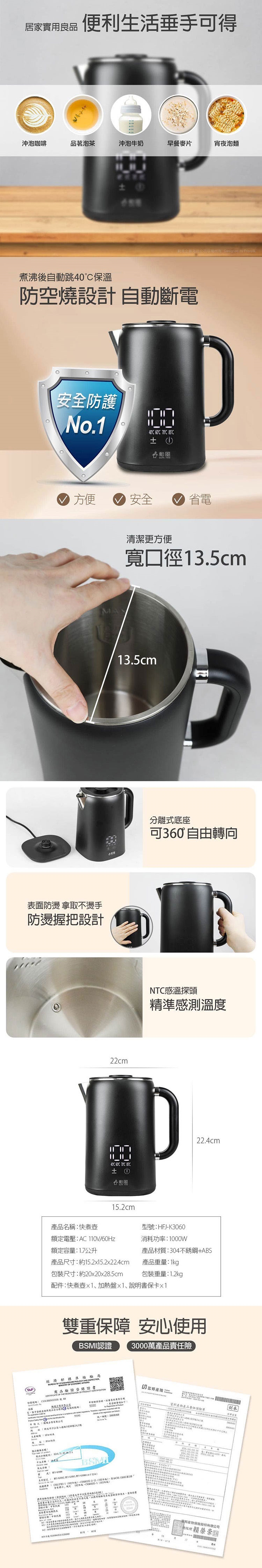 ◎ 防乾燒設計,高溫熔斷保護