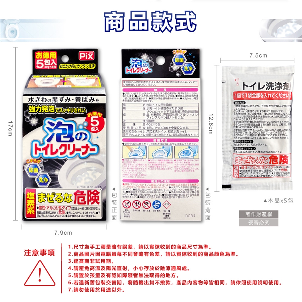 ●品名:PIX免刷洗強力發泡去污淨白消臭馬桶清潔粉