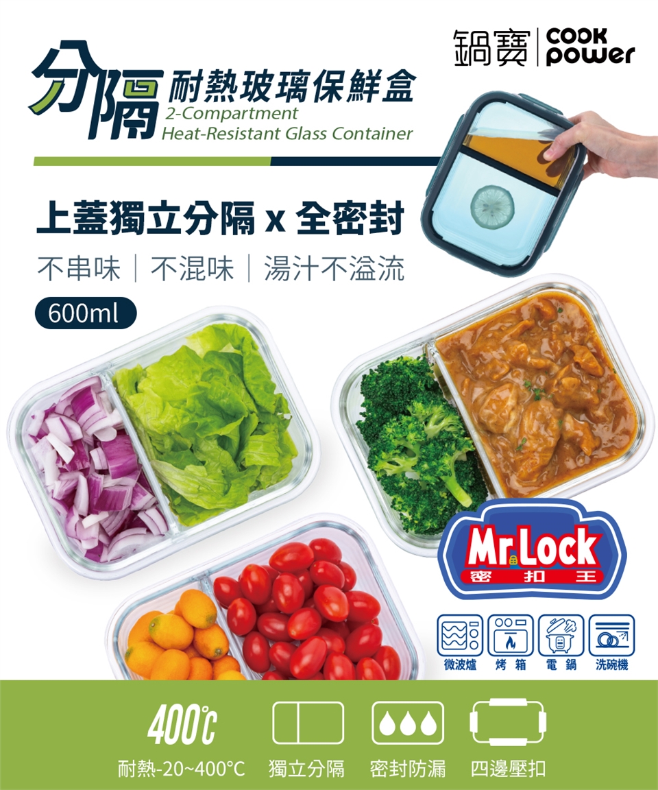 品名:【CookPower鍋寶】耐熱玻璃保鮮盒餐餐好備3件組(EO-BVC064Z2BVG618)