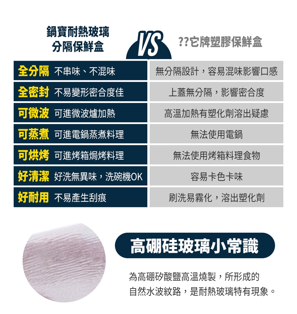 材質:盒身/高硼硅玻璃(耐熱–20℃~400℃、耐溫差120℃)