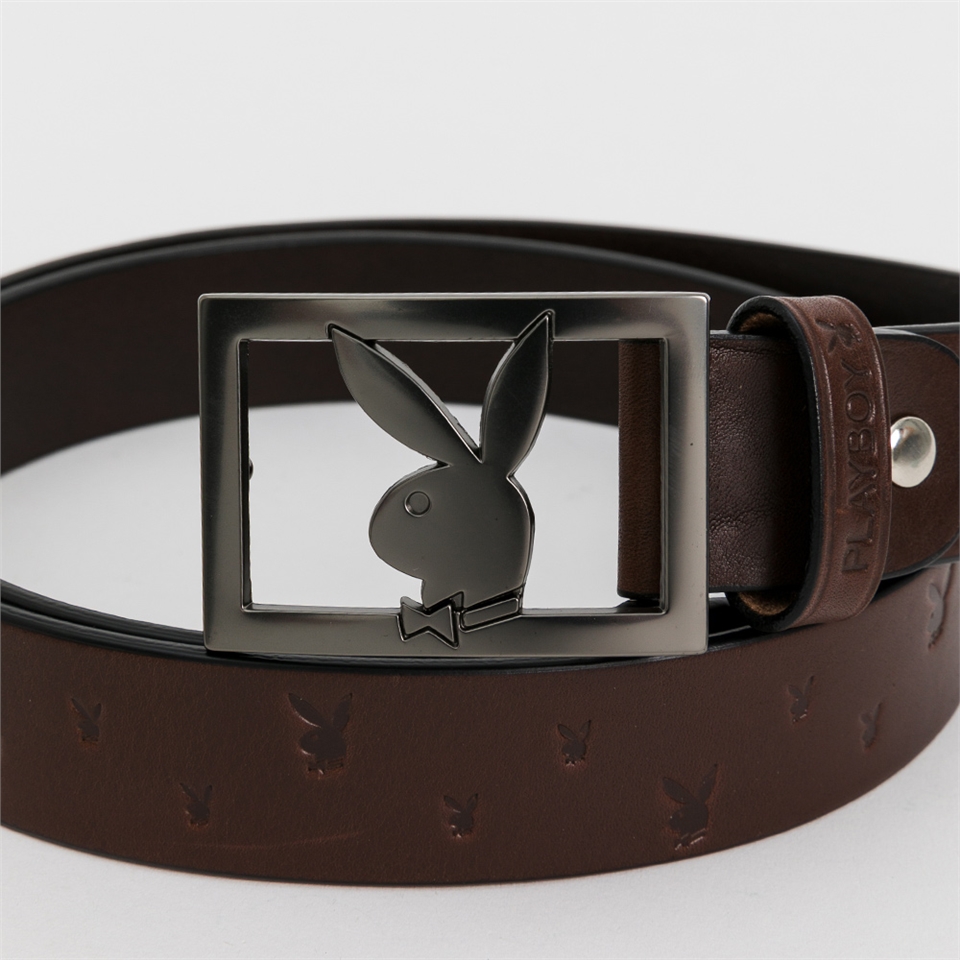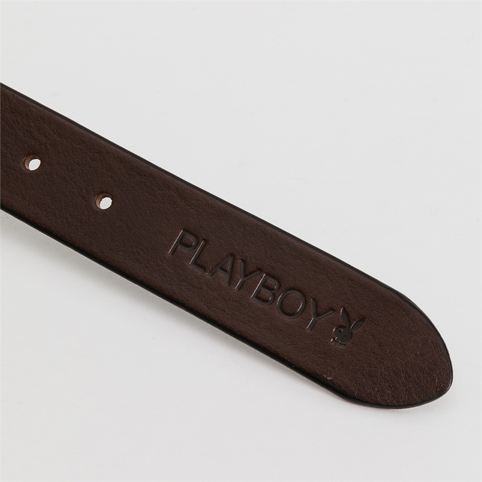 PLAYBOY - 兔頭金屬皮帶 皮帶系列 - 咖啡色