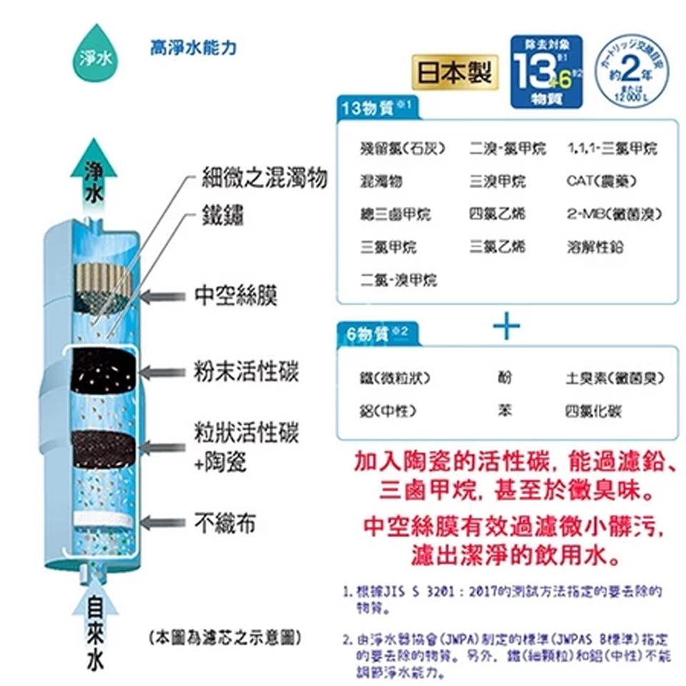 ◎ 可過濾水量 12000 L (可使用量約一年)。