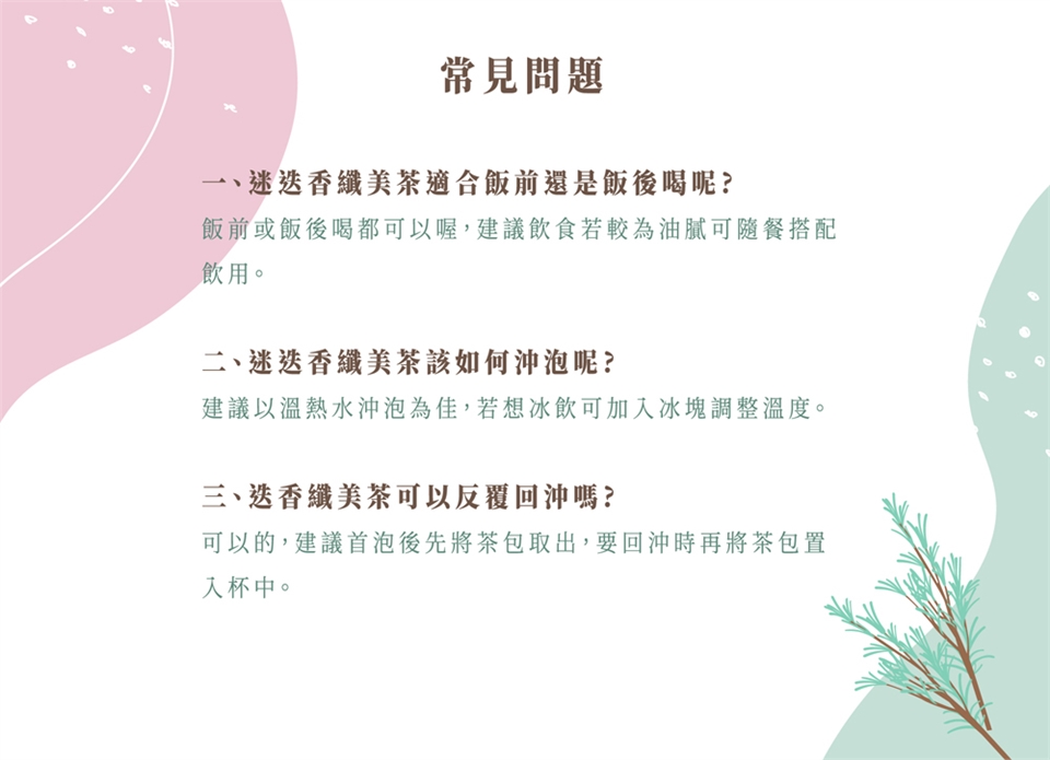 以熱水約250毫升沖泡,5分鐘即可飲用,水量及沖泡時間,可隨個人喜好斟酌水量