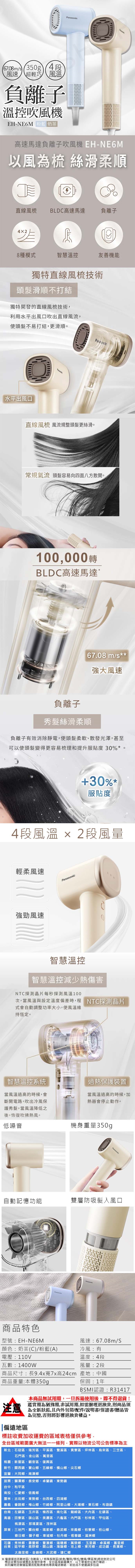 【國際牌Panasonic】高速負離子溫控吹風機 EH-NE6M (奶茶色/粉藍色)