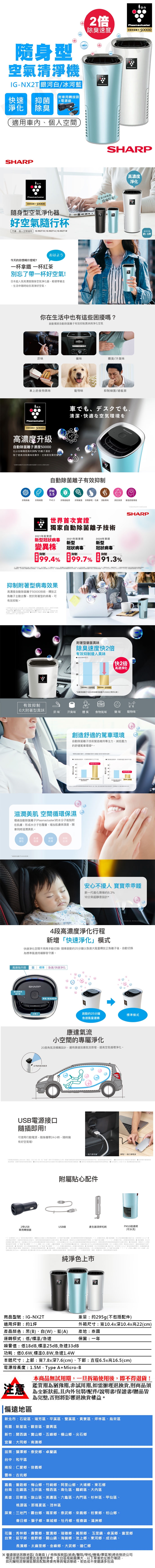 【夏普SHARP】隨身空氣清淨機 IG-NX2T
