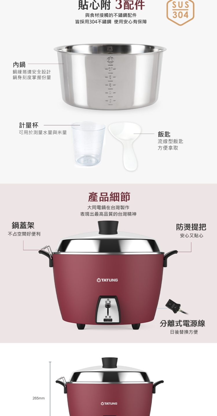 ★ 採用SUS304不鏽鋼內鍋/外鍋