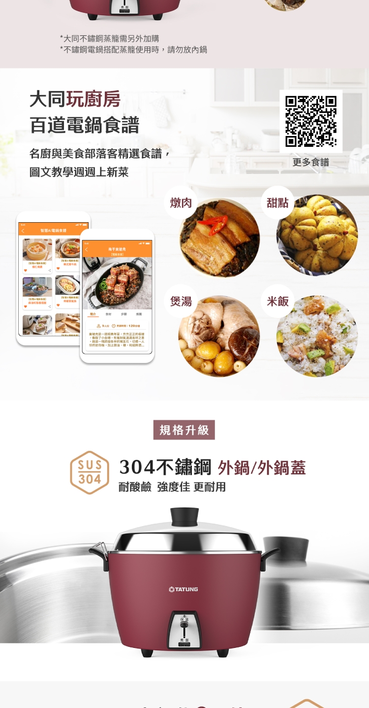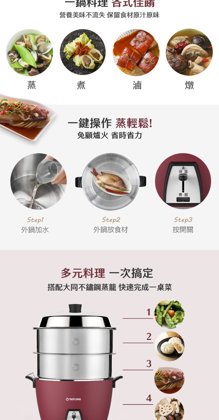 ◆ 煮飯/粥、蒸、滷、燉多用途