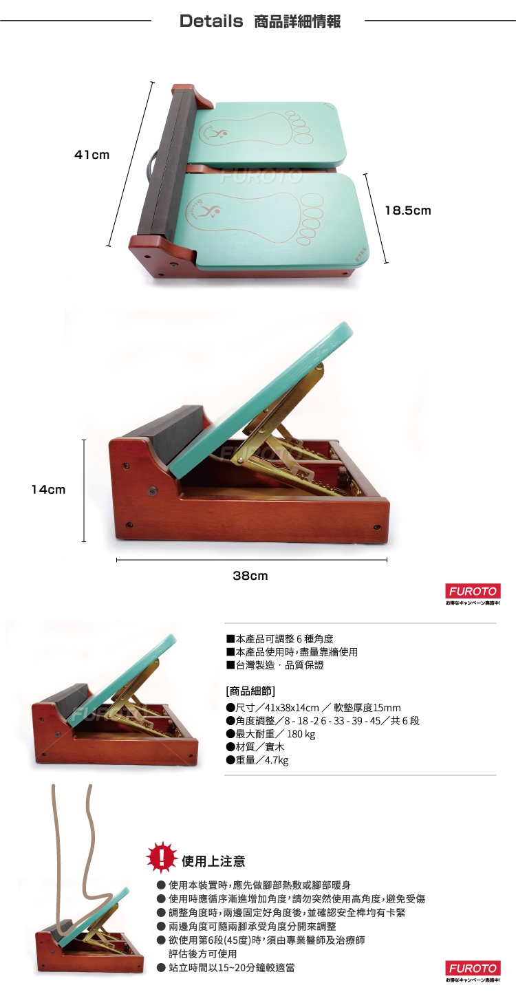 ★使用時應循序漸進增加角度,請勿突然使用高角度,避免受傷