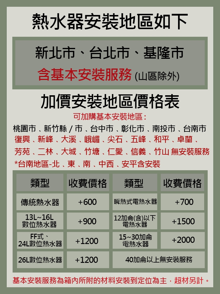 新北市、台北市、基隆市區含標準基本安裝及運送