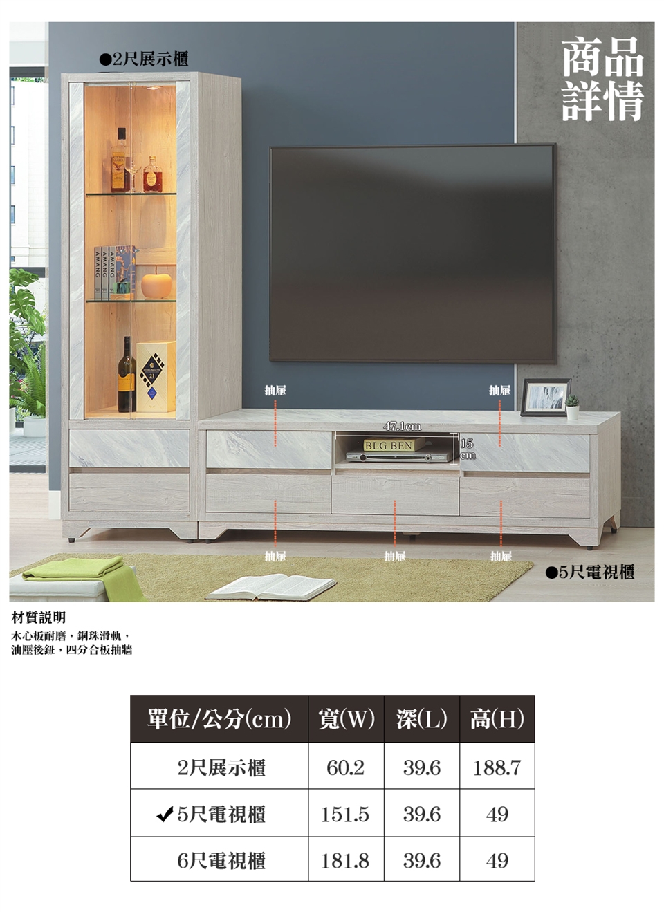 ※此賣場僅販售 語梓也5尺電視長櫃※